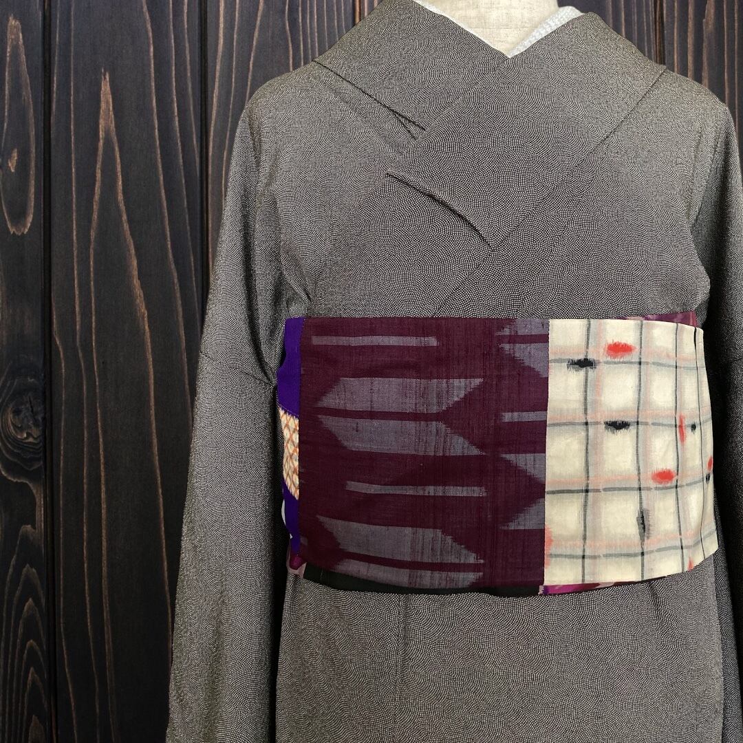 紫が効き色のパッチワークでお作り致しました半幅帯です。