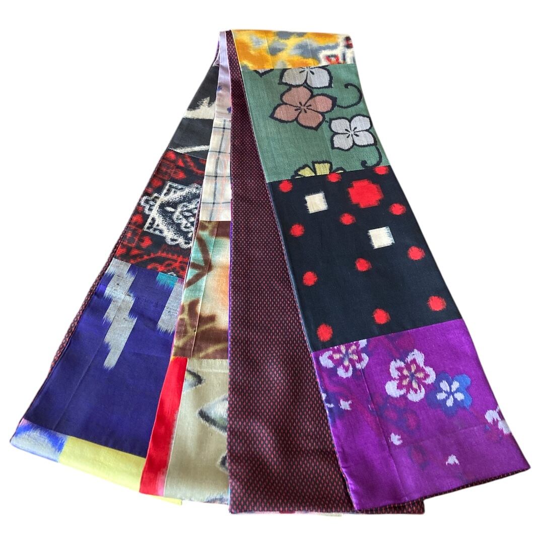 var.78アンティーク着物リメイク.切嵌風.銘仙.大人の兵児帯 半幅帯 パッチワーク 長尺470cm