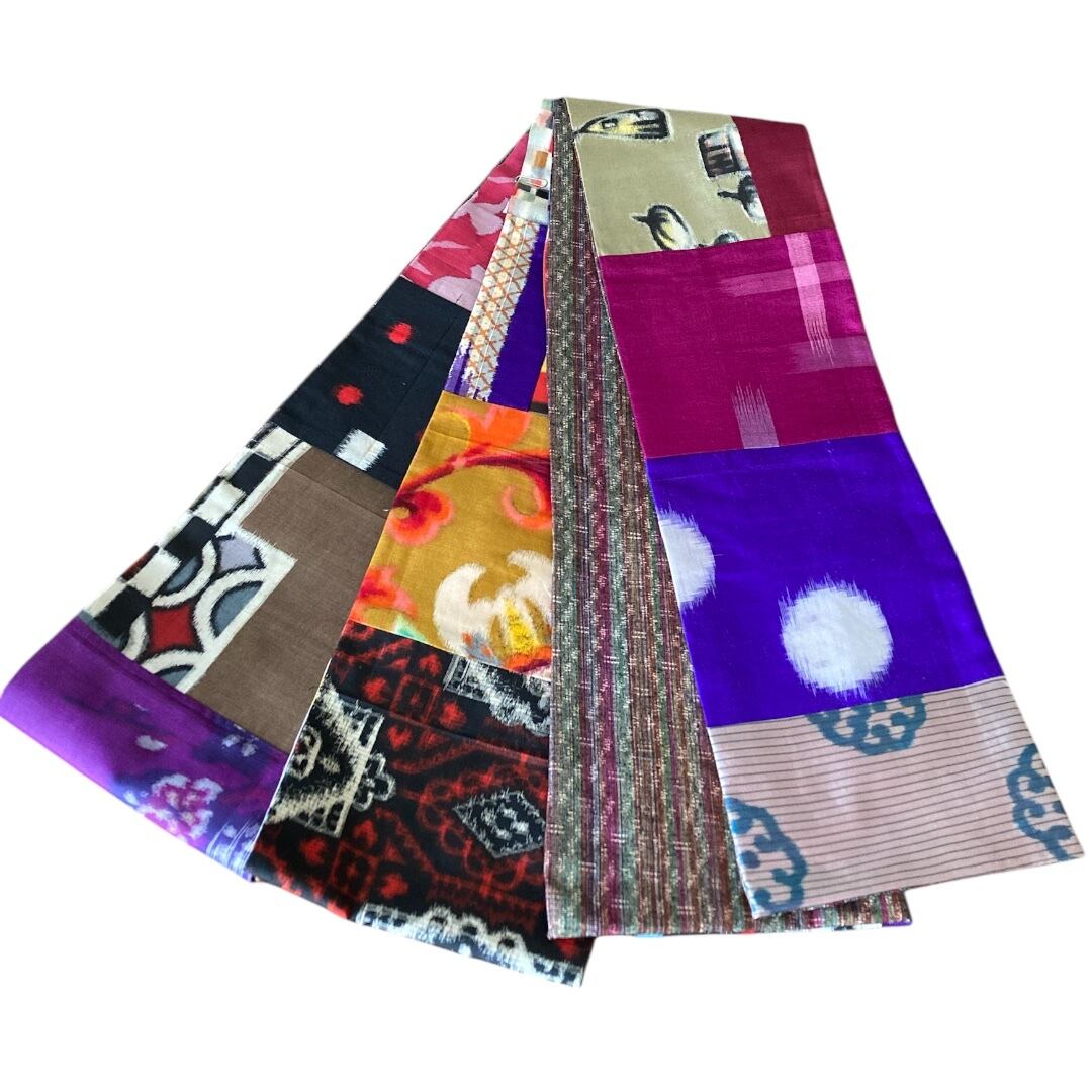 var.83アンティーク着物リメイク.切嵌風.銘仙.大人の兵児帯 半幅帯 パッチワーク 長尺460cm