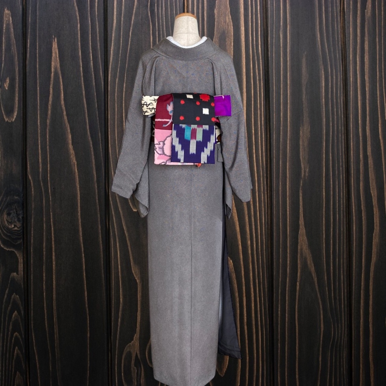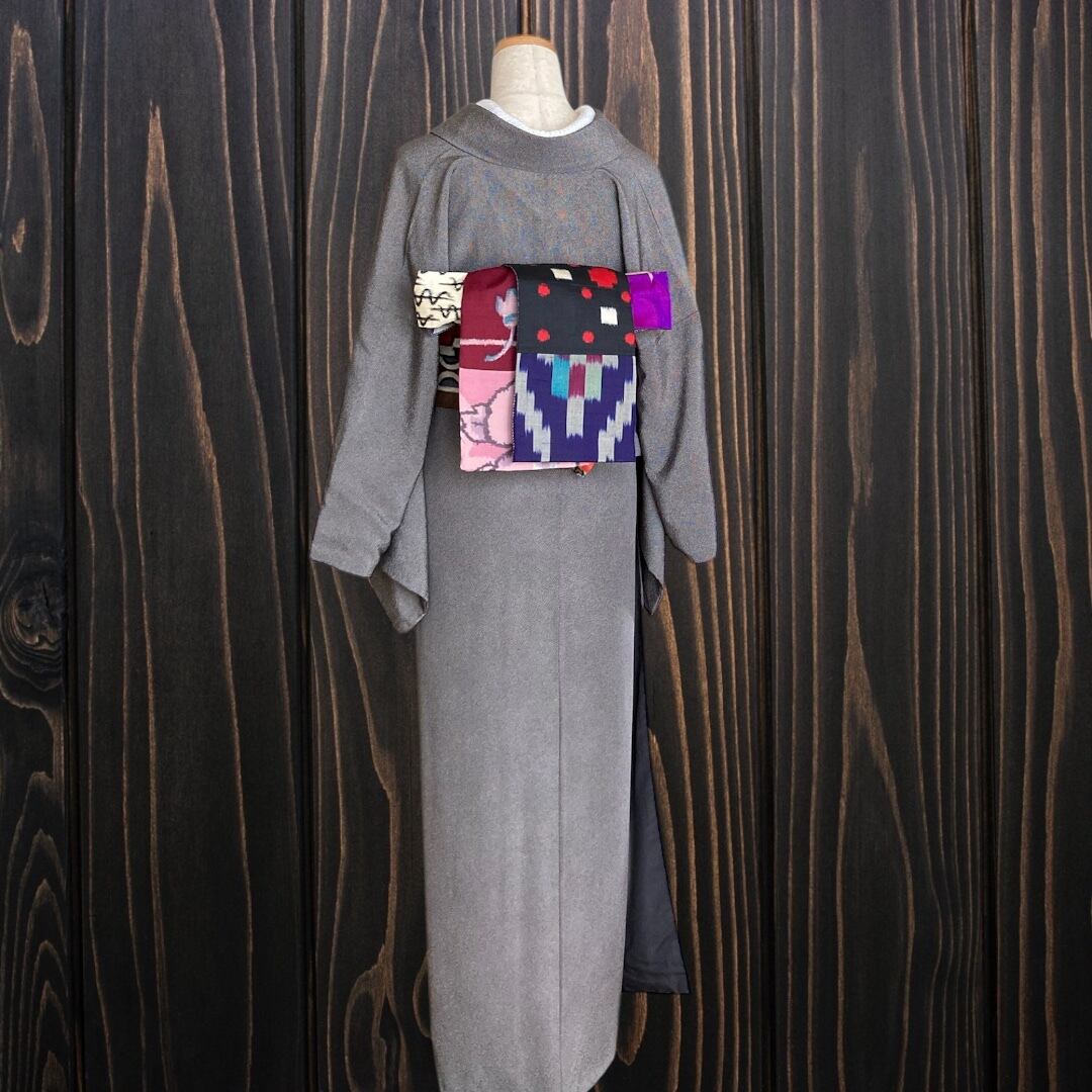 MIXしたお色味と柄でお作り致しました半幅帯です。