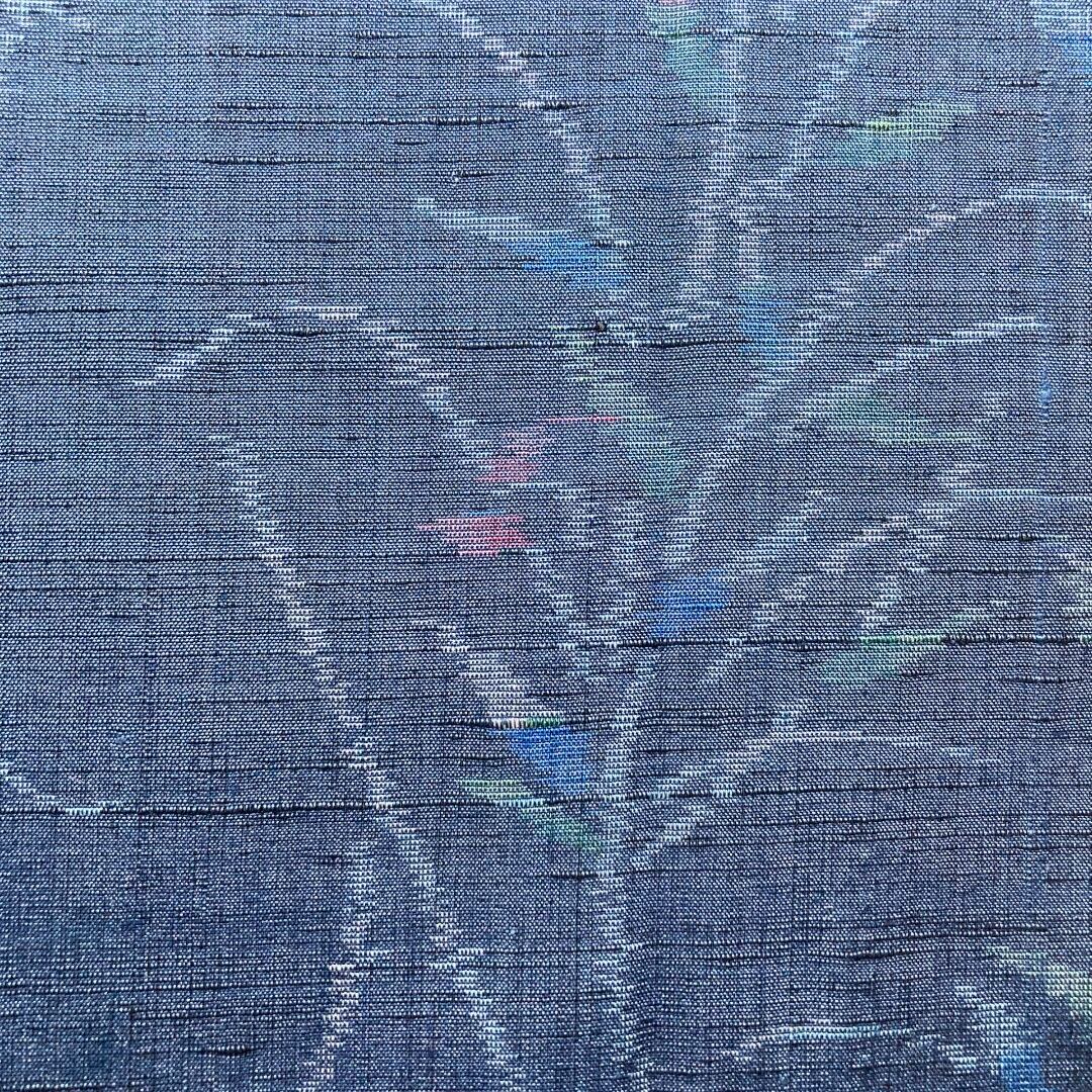 *絹お着物リメイク* 木花草花の白と紺 大人の兵児帯 半幅帯 長尺475cm