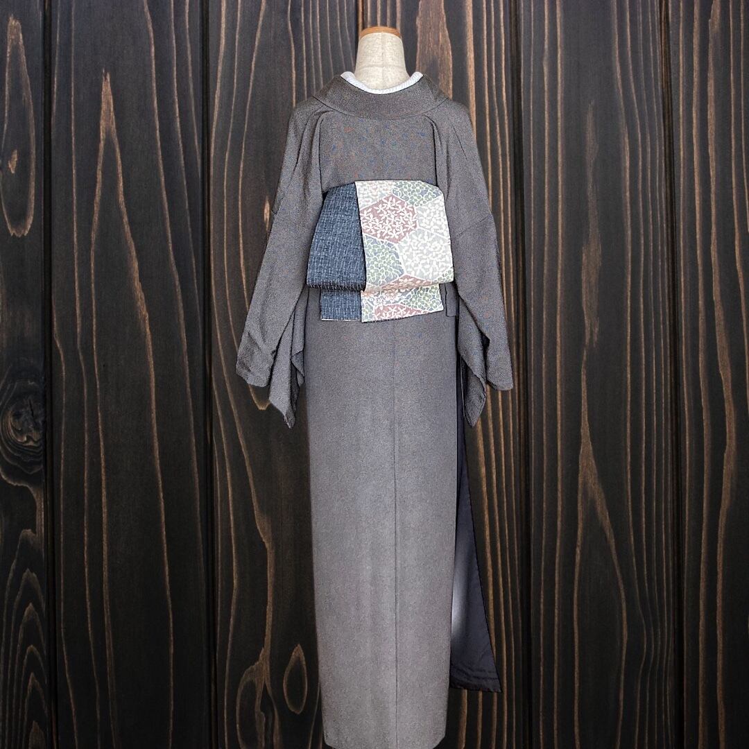 *着物反物* 結城紬と鼠色立涌 大人の兵児帯 半幅帯 長尺470cm