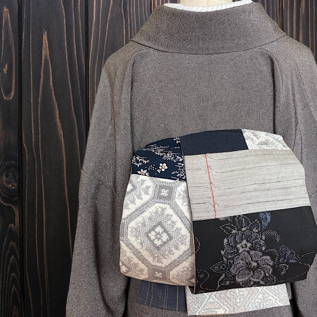 *紬お着物リメイク パッチワーク*16 大人の兵児帯 半幅帯 長尺435cm