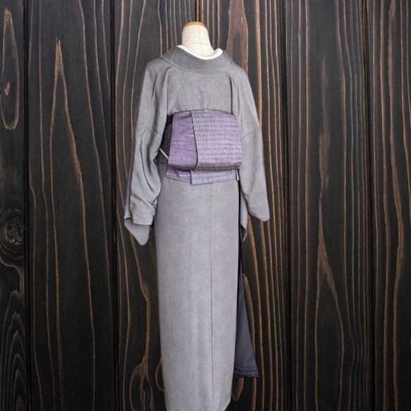 *着物反物* 灰紫紬二種類 大人の兵児帯 半幅帯 長尺485cm