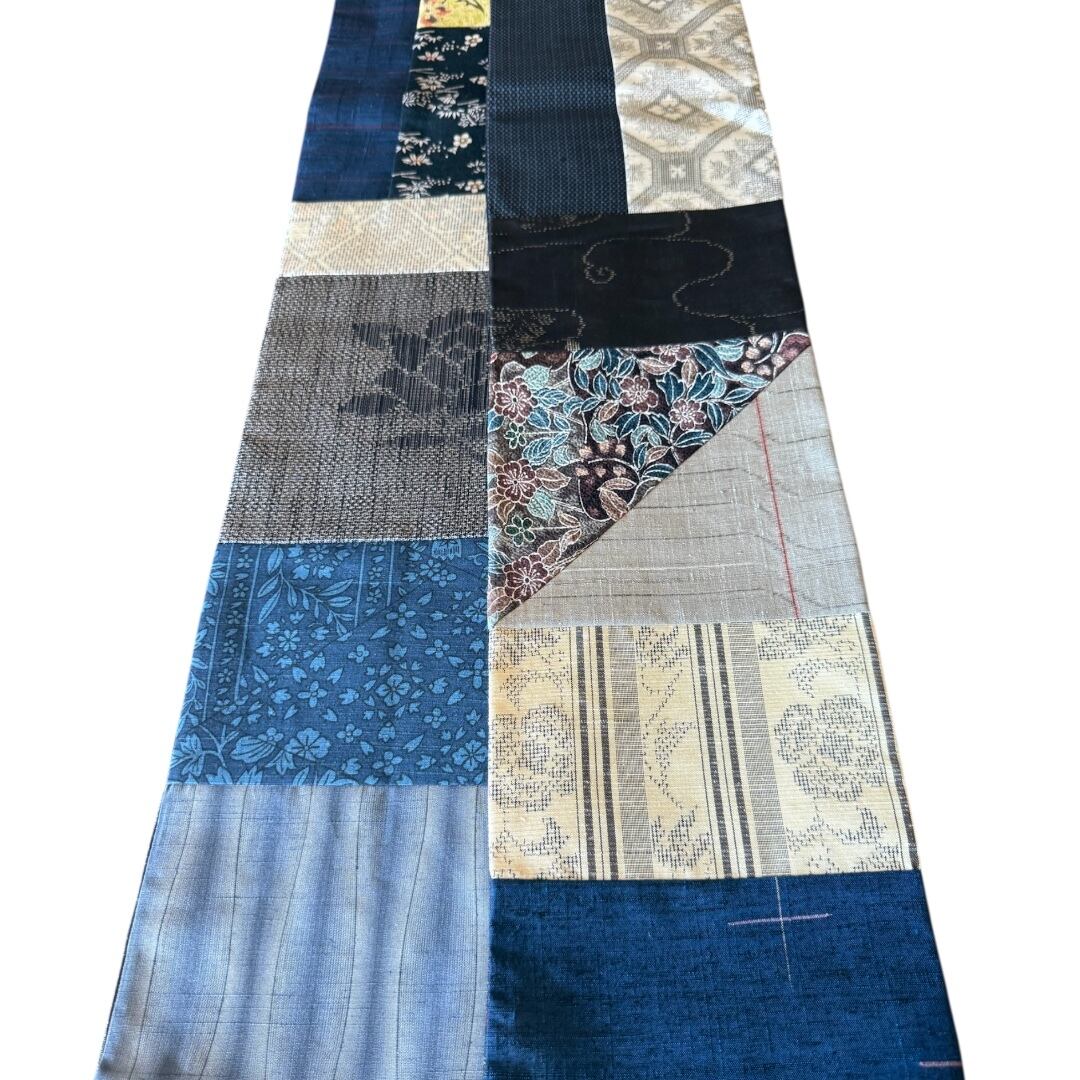 *絹お着物リメイク パッチワーク*22 大人の兵児帯 半幅帯 長尺450cm