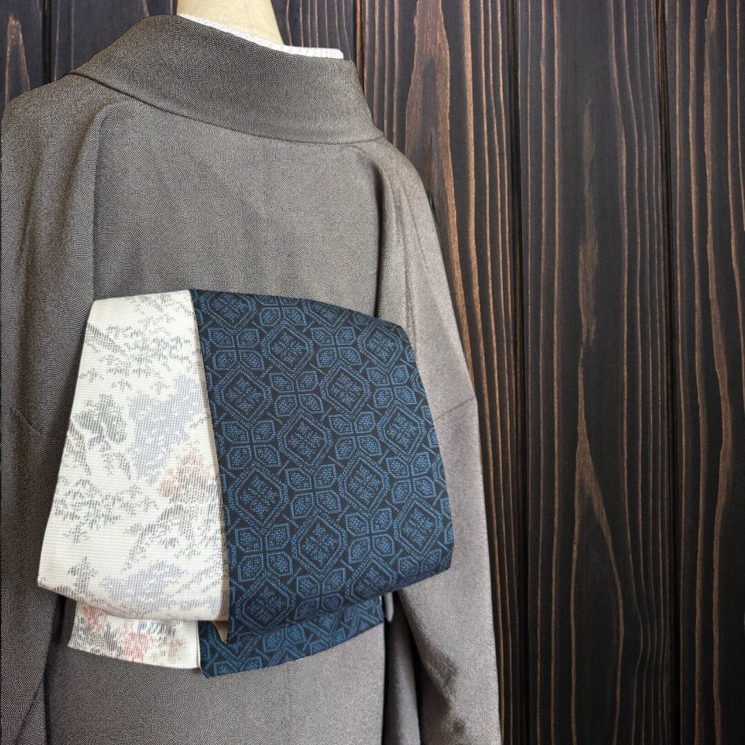リバーシブルの良いところは1本で2度お楽しみ頂けるところ。同じお着物でも印象が変わりますよね。