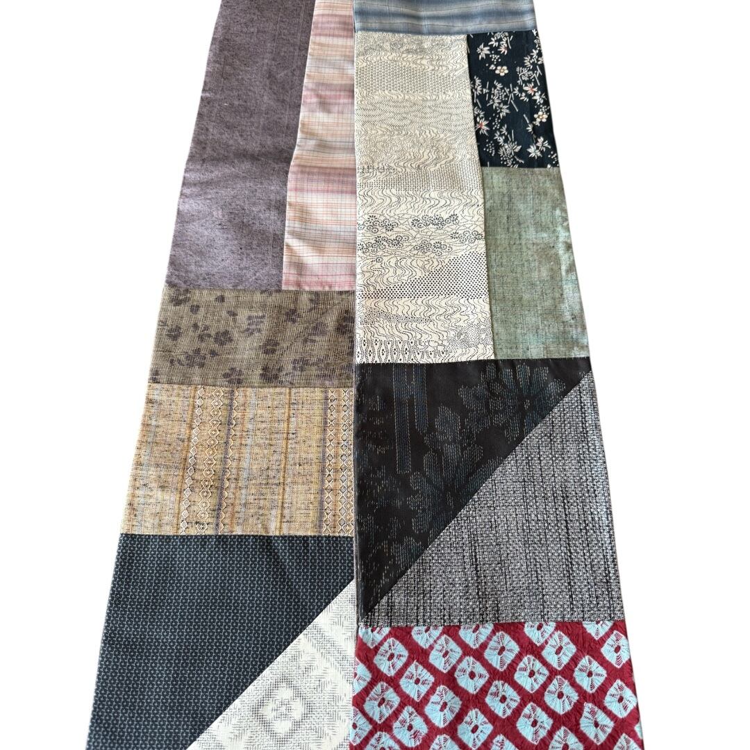 そして色々な形のパッチワークにして半幅帯に致しました。