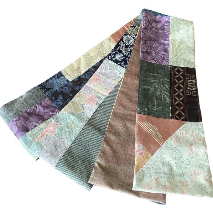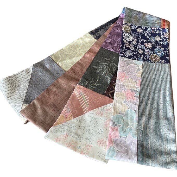 *紬お着物リメイク パッチワーク* 大人の兵児帯 半幅帯 長尺455cm