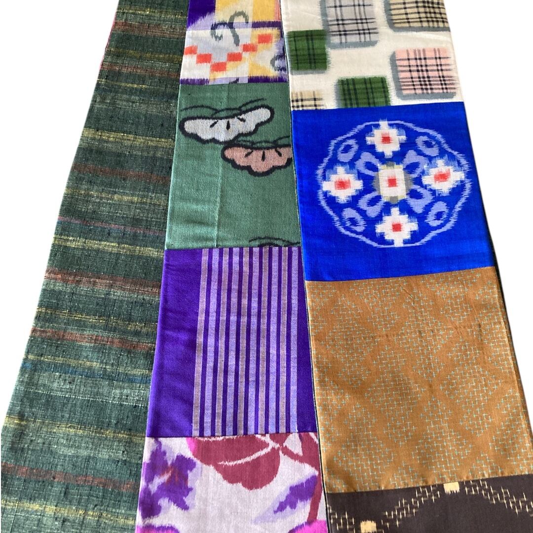 var.67 アンティーク着物リメイク.切嵌風.銘仙.大人の兵児帯 半幅帯 パッチワーク 長尺440cm