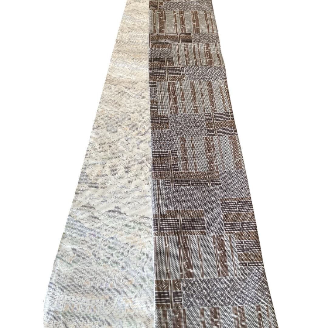 *着物反物* 大島紬灰茶と灰白風景 大人の兵児帯 半幅帯 長尺475cm