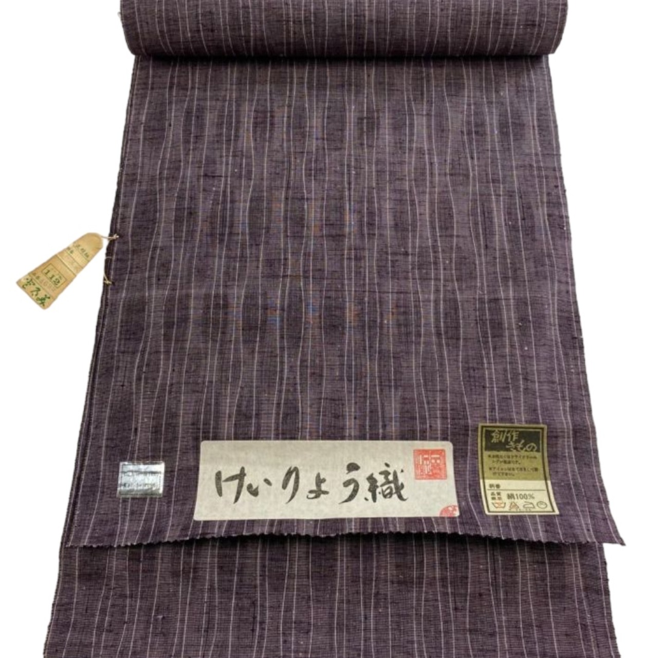 *着物反物* 染め紬とよろけ縞灰紫 兵児帯 半幅帯 長尺465cm