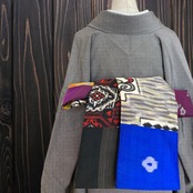 大正.昭和初期.普通に着用されていた可愛い着物を解いて風にあて、誇りを払い.出来るだけ綺麗な部分をとってパッチワーク風にお仕立ていたしました.