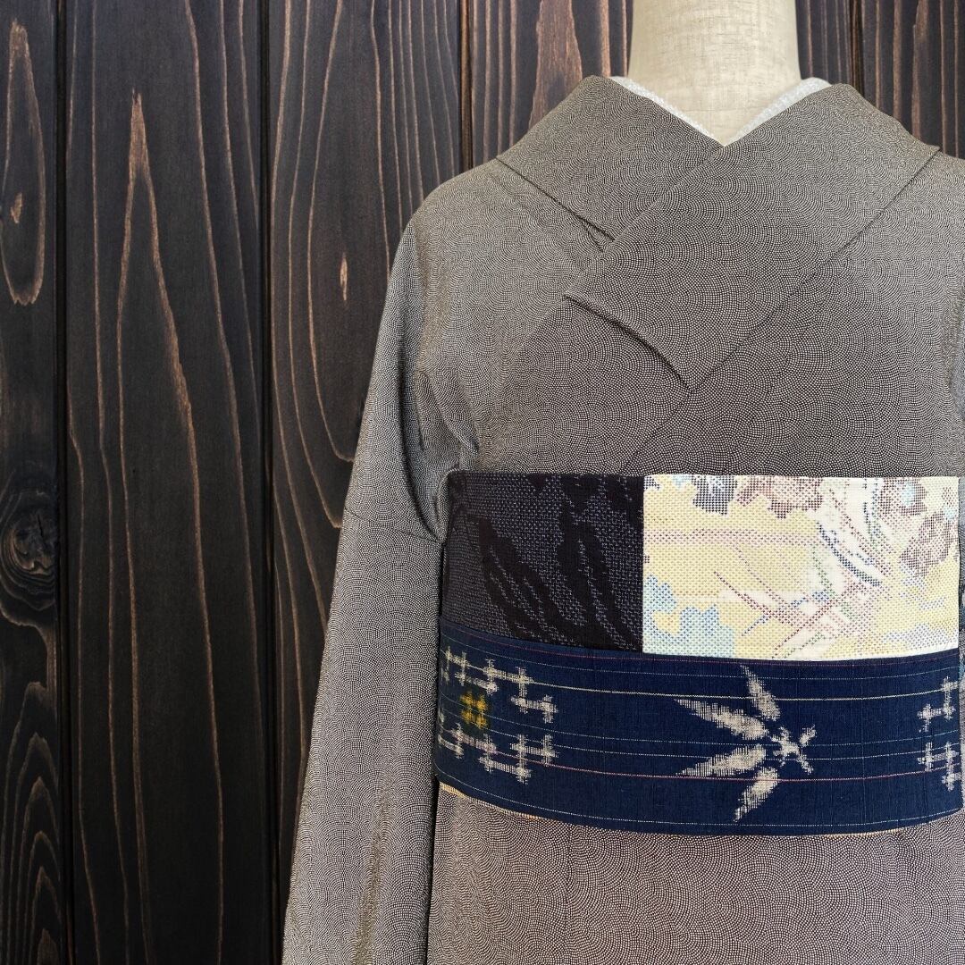 様々な色柄が散りばめられ、着用の際にどの部分を出そうかと考えるのが楽しい帯です。柄がシンプルな着物や無地の着物にもこれを締めると表情の変化がつきます。と言って頂けました帯です。