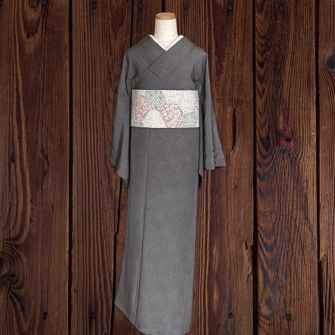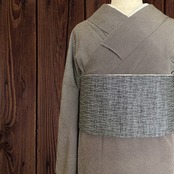 *着物反物* 結城紬と鼠色立涌 大人の兵児帯 半幅帯 長尺460cm